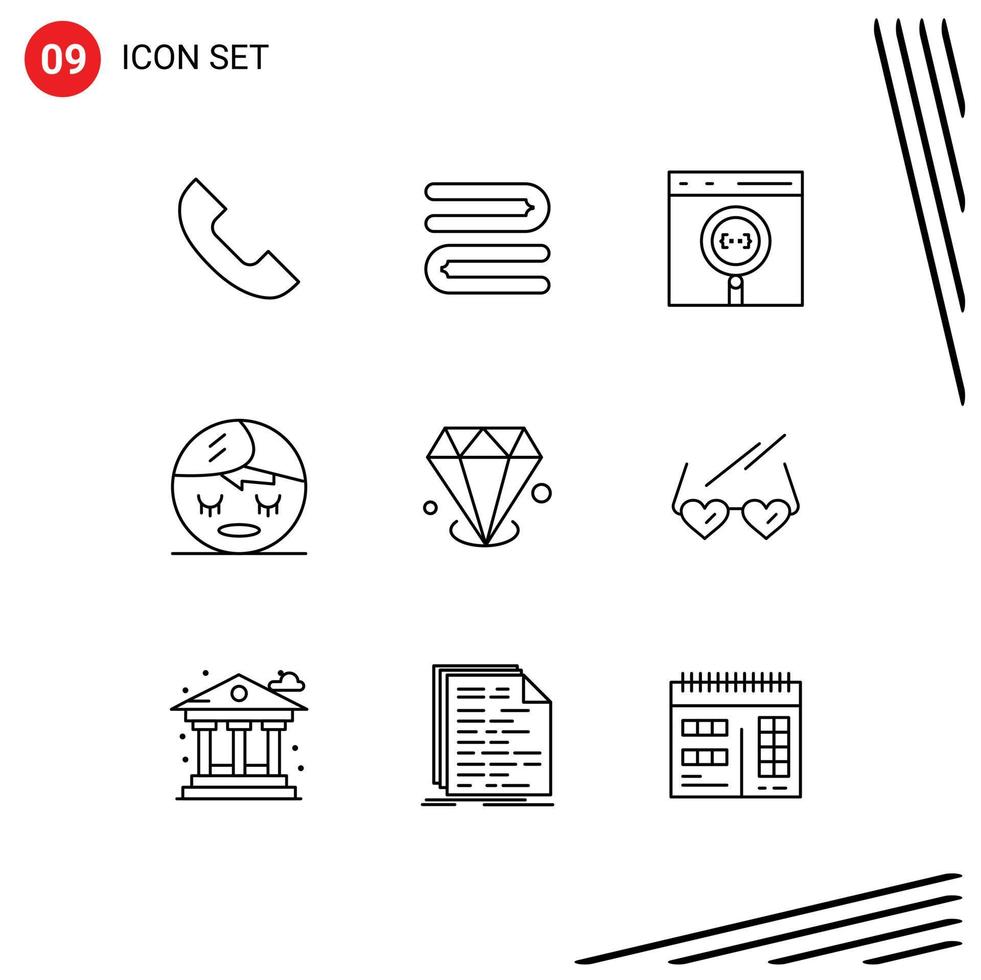 Set of 9 Modern UI Icons Symbols Signs for investment diamonf browser element spa Editable Vector Design Elements Free Vector