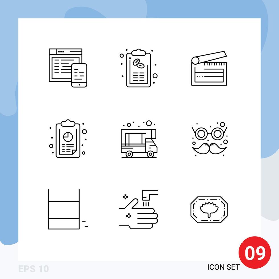 Modern Set of 9 Outlines Pictograph of graph analytics menu annual report clapper Editable Vector Design Elements Free Vector
