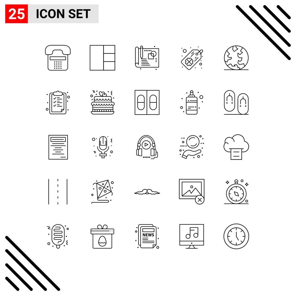 Mobile Interface Line Set of 25 Pictograms of paper online process internet four leaf clover Editable Vector Design Elements Free Vector