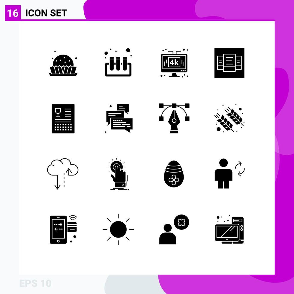 16 Solid Glyph concept for Websites Mobile and Apps drinks catalog display table layout Editable Vector Design Elements