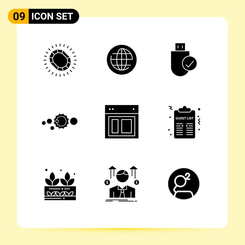 Mobile Interface Solid Glyph Set of 9 Pictograms of solar system system internet solar hardware Editable Vector Design Elements