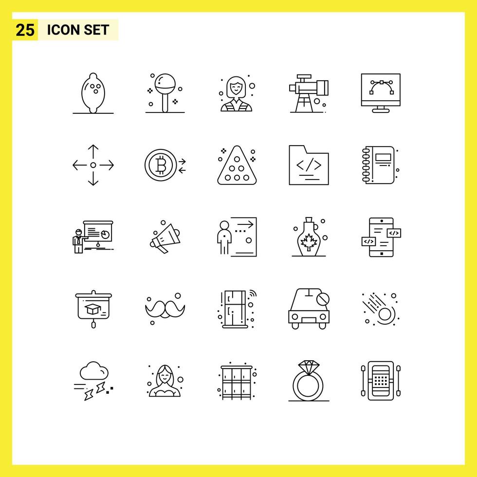 Universal Icon Symbols Group of 25 Modern Lines of design and coding telescope female space astronomy Editable Vector Design Elements