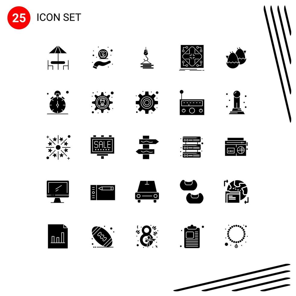 Pack of 25 Modern Solid Glyphs Signs and Symbols for Web Print Media such as grid network crane infrastructure hook Editable Vector Design Elements Free Vector
