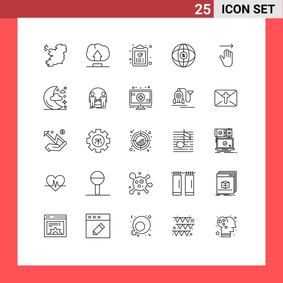 Editable Vector Line Pack of 25 Simple Lines of gestures hand ok dollar globe Editable Vector Design Elements