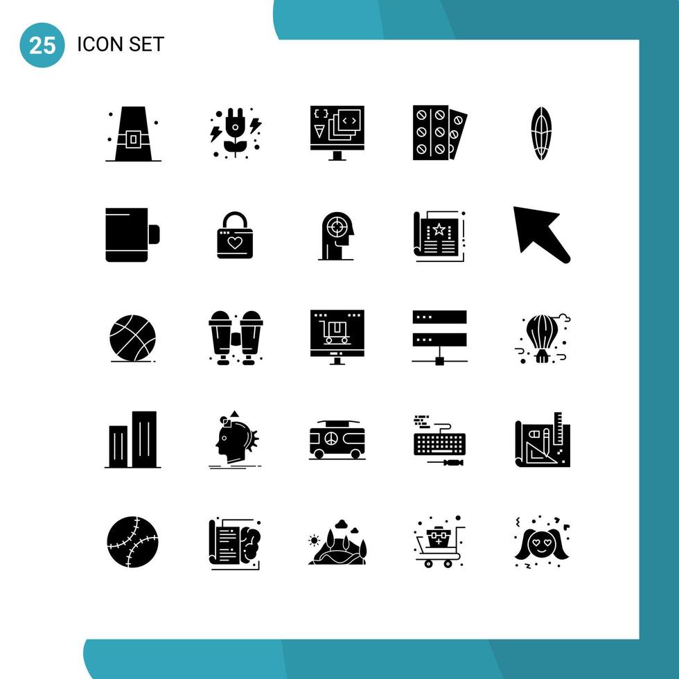 Pack of 25 creative Solid Glyphs of recreation patient app medicine programming Editable Vector Design Elements Free Vector