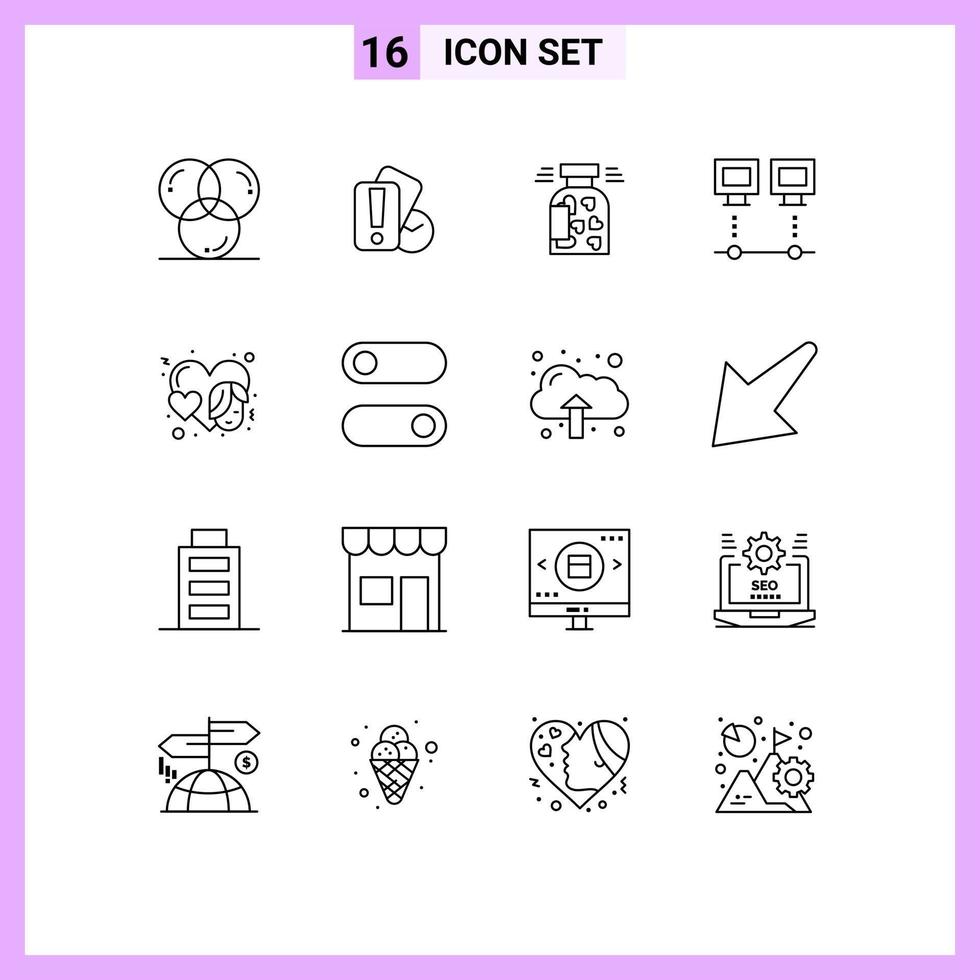 Modern Set of 16 Outlines Pictograph of net connection referee computers heart Editable Vector Design Elements