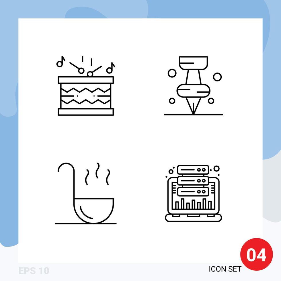 Stock Vector Icon Pack of 4 Line Signs and Symbols for drum spoon sticks pi graph Editable Vector Design Elements