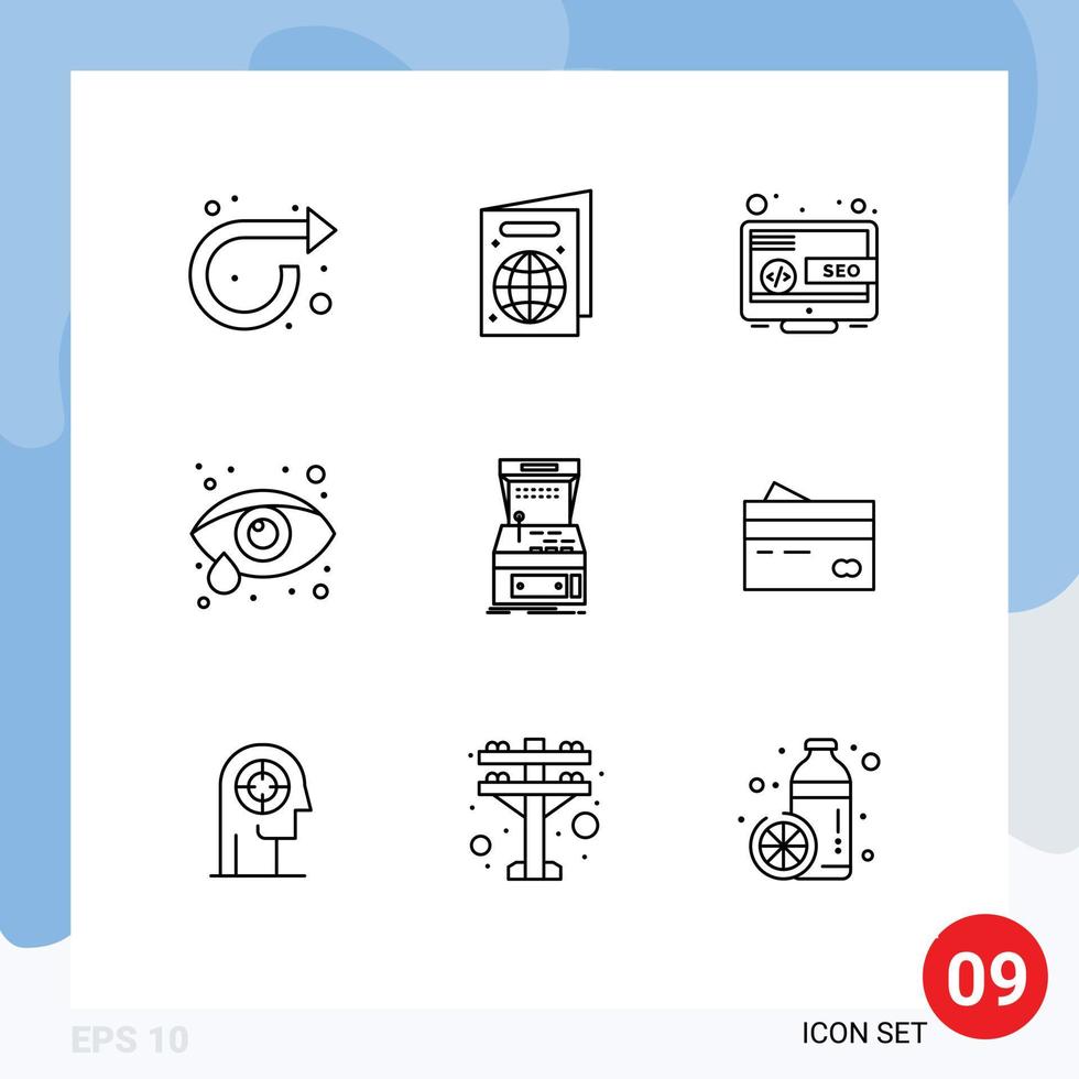 Pictogram Set of 9 Simple Outlines of machine console seo arcade eye health Editable Vector Design Elements Free Vector
