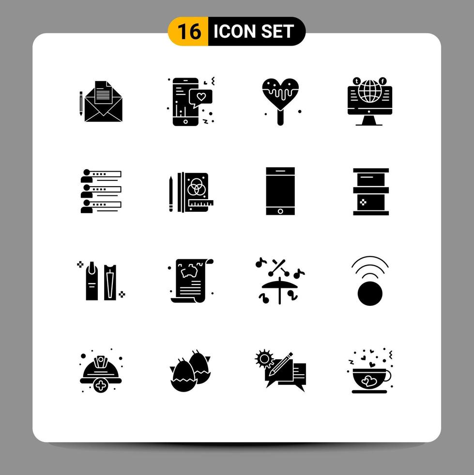Pictogram Set of 16 Simple Solid Glyphs of graphs facebook ice cream social media globe Editable Vector Design Elements