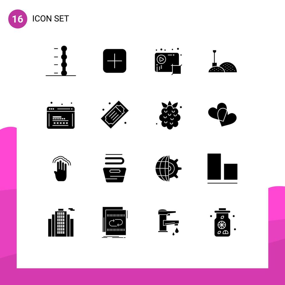 Group of 16 Modern Solid Glyphs Set for programming coding crop tools construction Editable Vector Design Elements