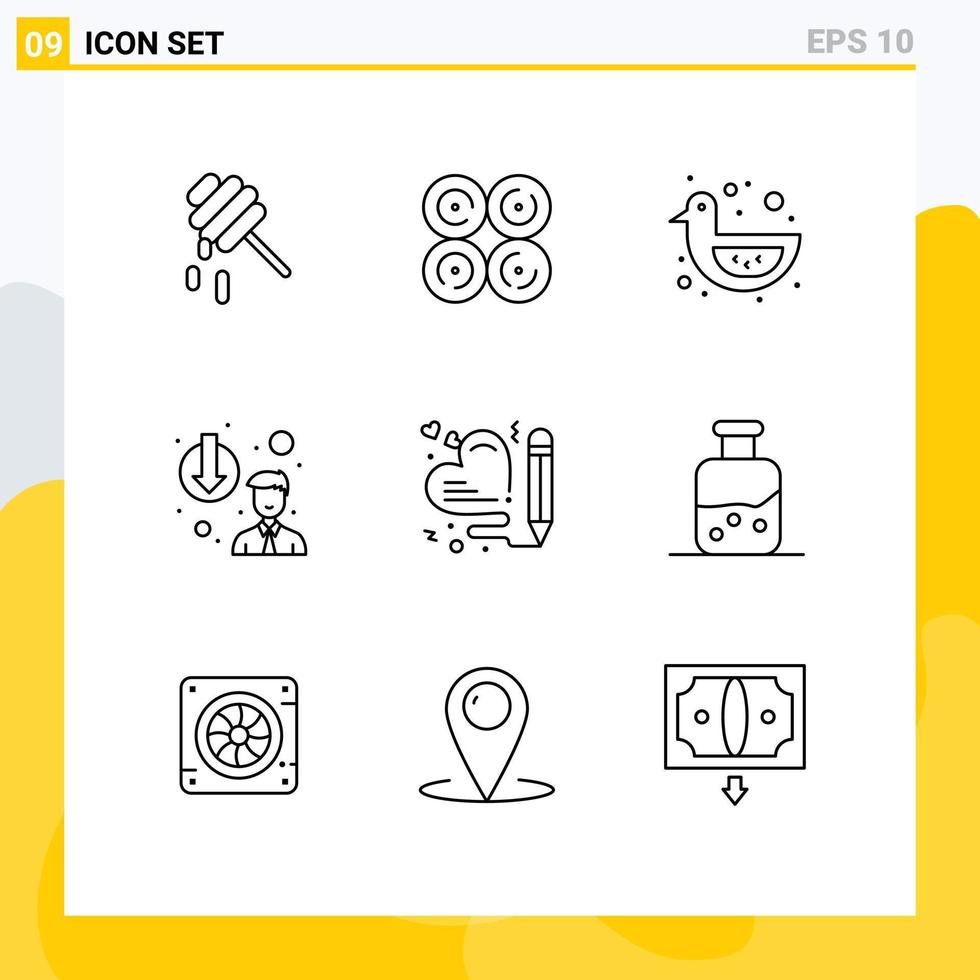 User Interface Pack of 9 Basic Outlines of pen heart duck downgrade degradation Editable Vector Design Elements Free Vector