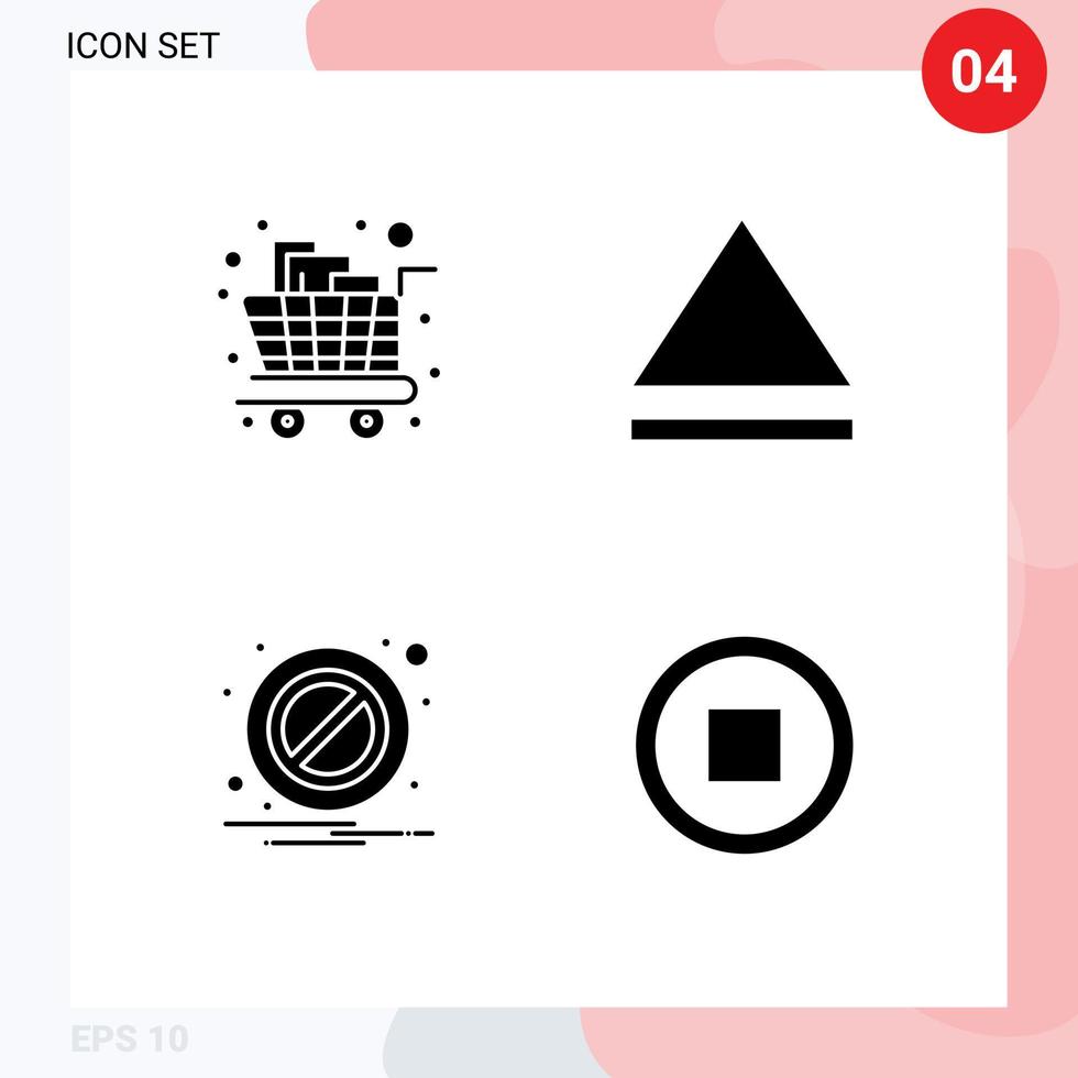 Solid Glyph Pack of 4 Universal Symbols of cart basic shopping block user Editable Vector Design Elements