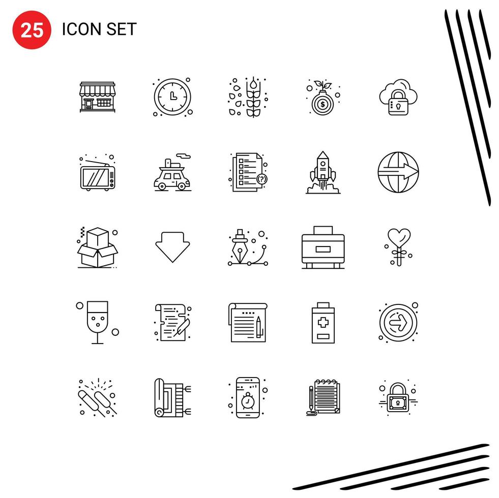 Editable Vector Line Pack of 25 Simple Lines of cloud money timer hand wheat Editable Vector Design Elements