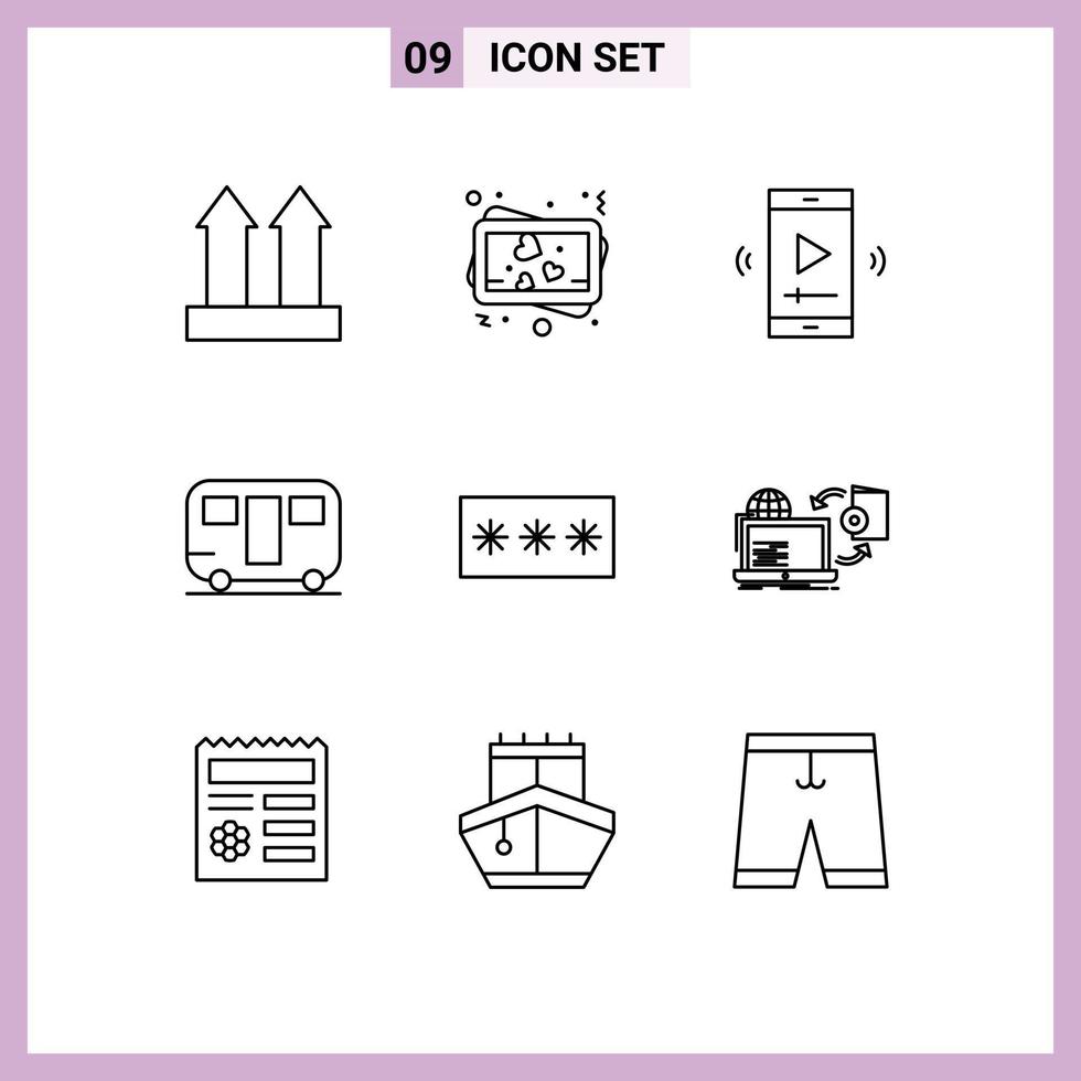 9 Outline concept for Websites Mobile and Apps key wagon movie screen travel caravan Editable Vector Design Elements