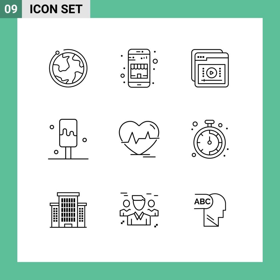 Set of 9 Vector Outlines on Grid for ecg ice tutorials cream learning Editable Vector Design Elements