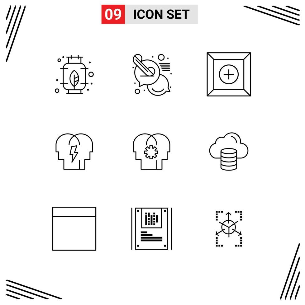 Set of 9 Vector Outlines on Grid for setting control new brain people Editable Vector Design Elements Free Vector