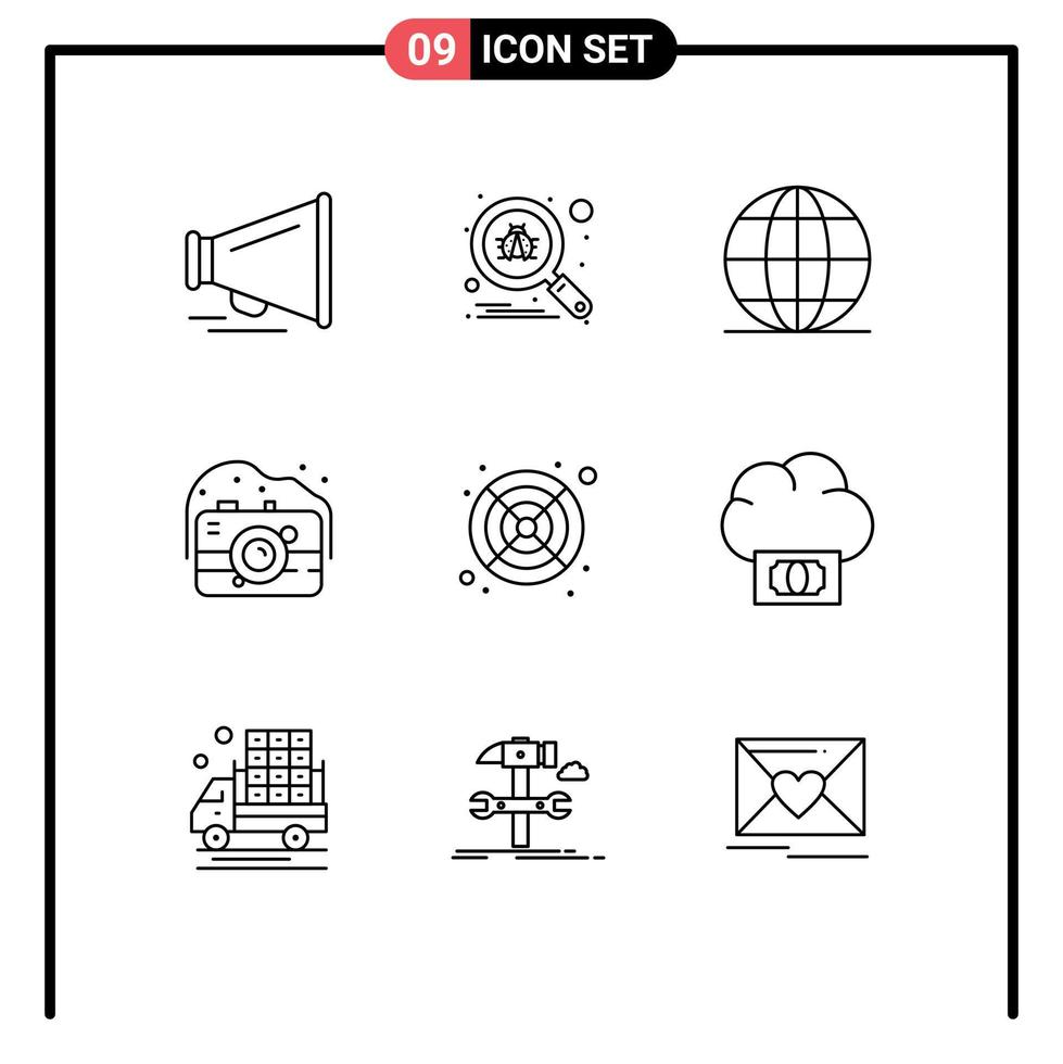 9 User Interface Outline Pack of modern Signs and Symbols of fan computer global photography old Editable Vector Design Elements Free Vector
