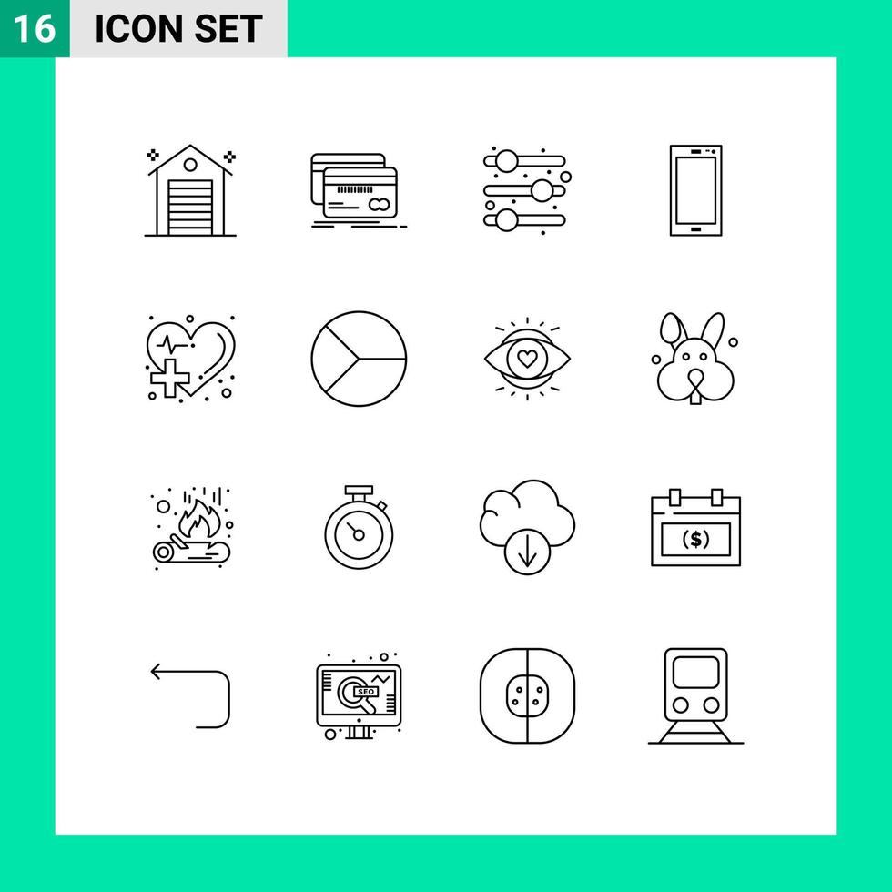 Mobile Interface Outline Set of 16 Pictograms of health iphone finance android smart phone Editable Vector Design Elements
