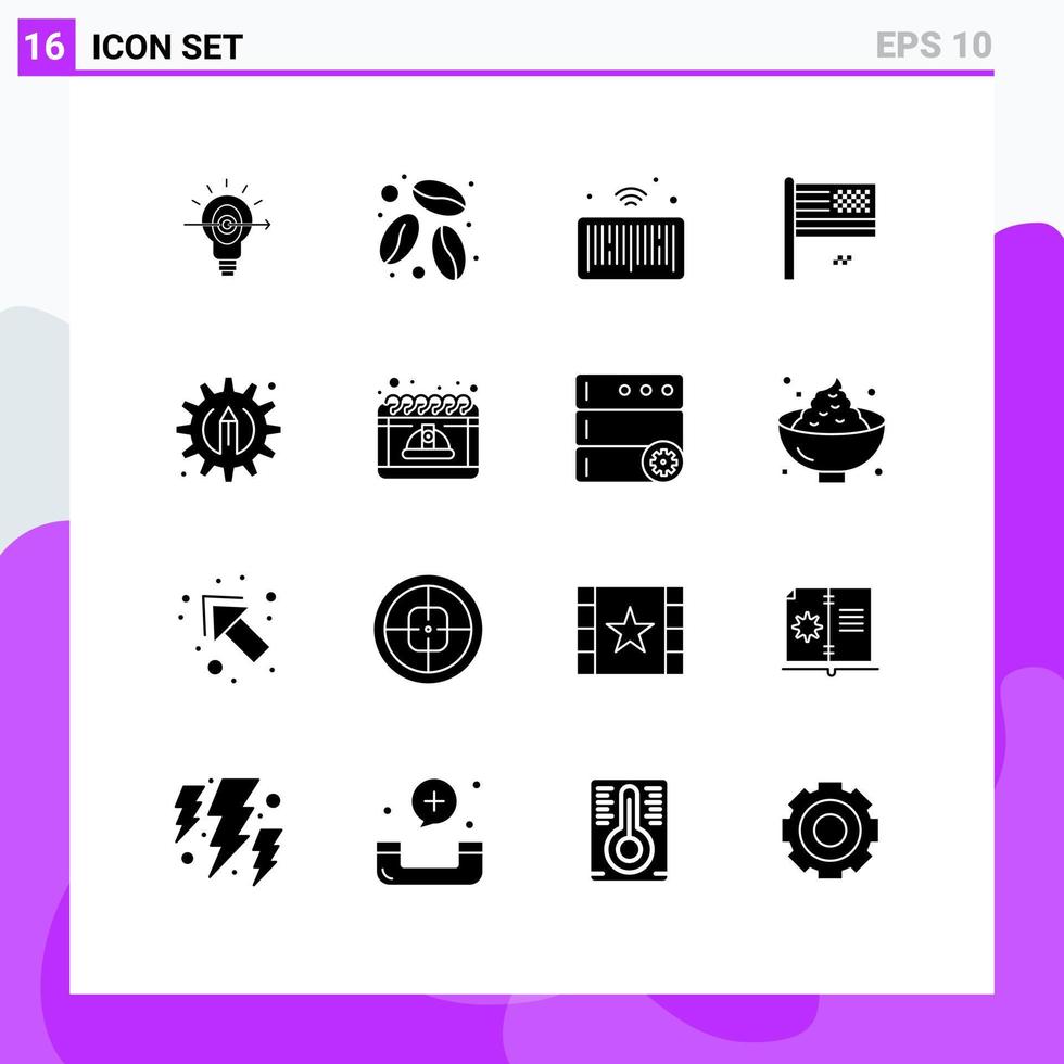 Universal Icon Symbols Group of 16 Modern Solid Glyphs of process flag internet fall collapse Editable Vector Design Elements Free Vector