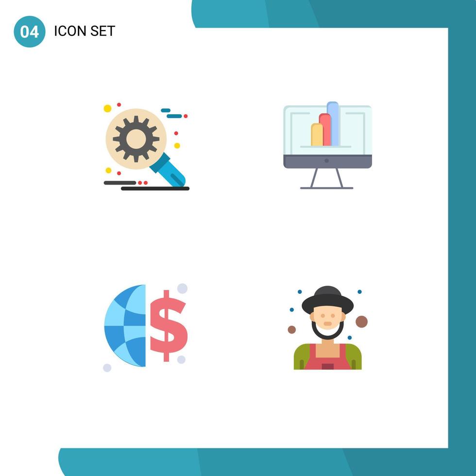 4 Flat Icon concept for Websites Mobile and Apps customize global invesment setting shart farmer Editable Vector Design Elements