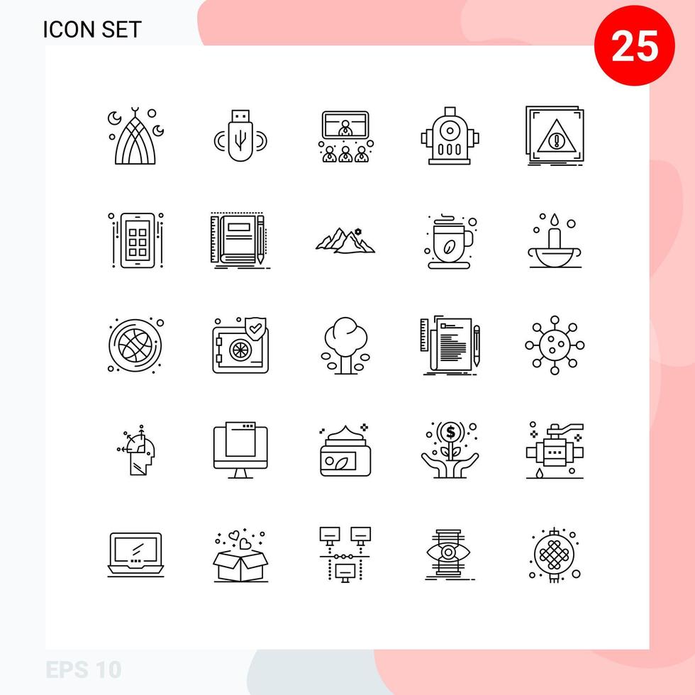 Set of 25 Modern UI Icons Symbols Signs for application water call hydrant video Editable Vector Design Elements