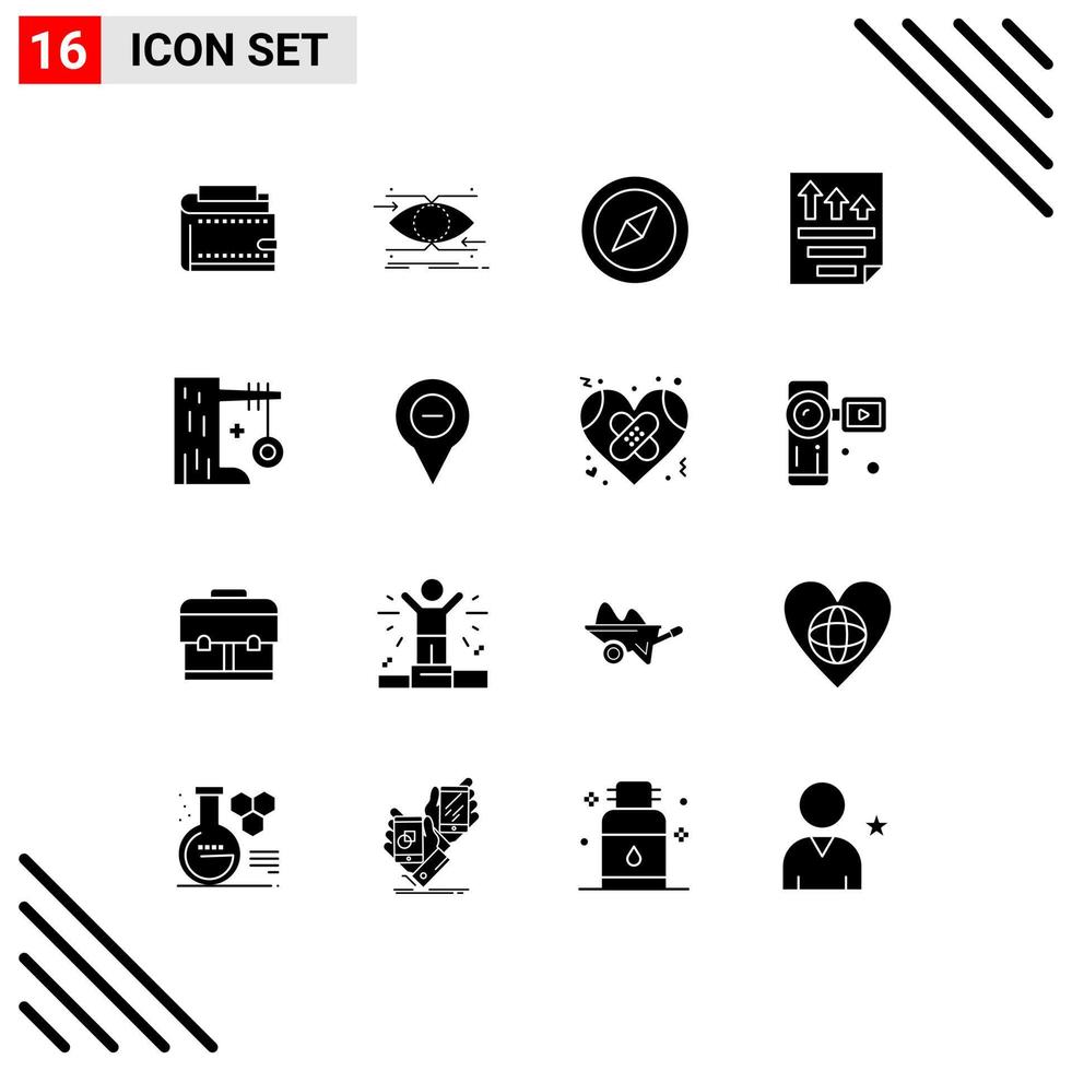 User Interface Pack of 16 Basic Solid Glyphs of paper file focus data location Editable Vector Design Elements Free Vector