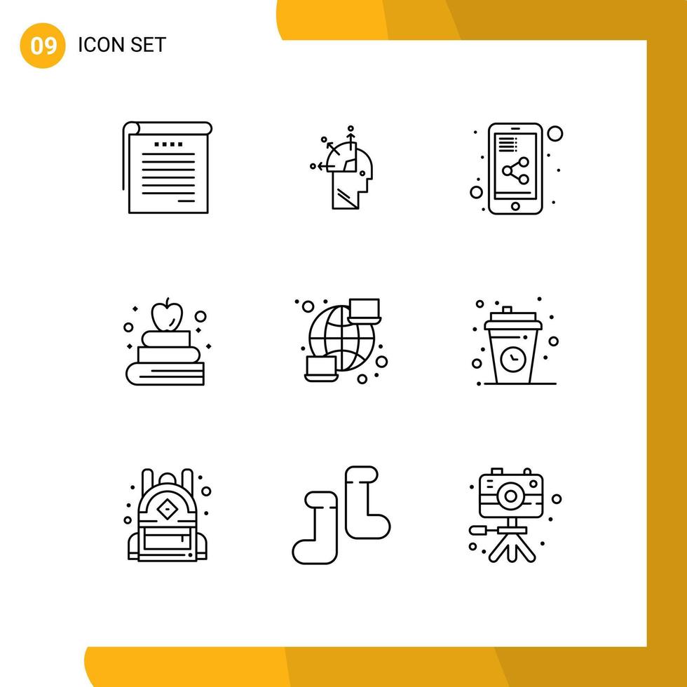 Modern Set of 9 Outlines Pictograph of streamline computer share global book Editable Vector Design Elements