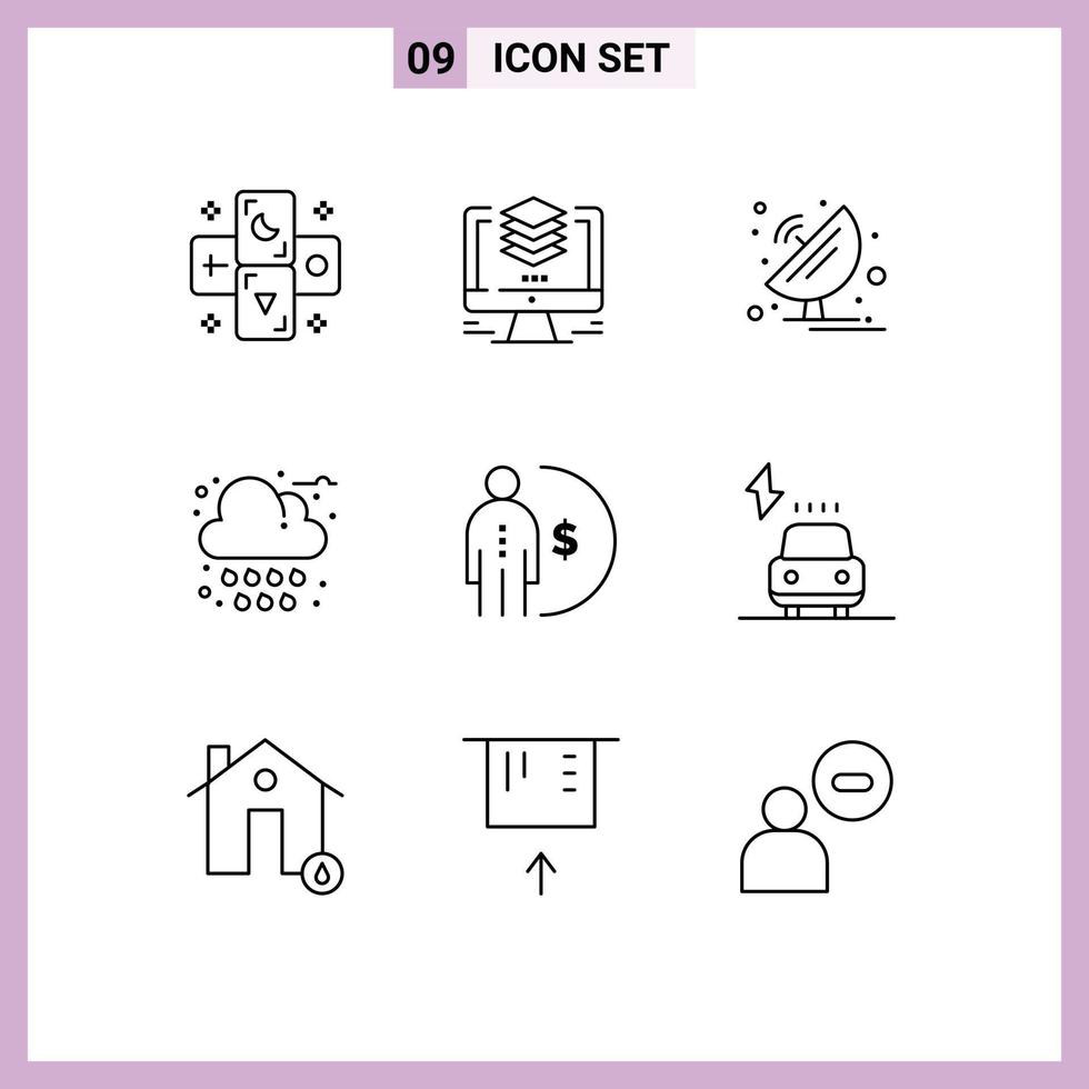 9 Outline concept for Websites Mobile and Apps weather cloud duplicate autumn satellite dish Editable Vector Design Elements Free Vector