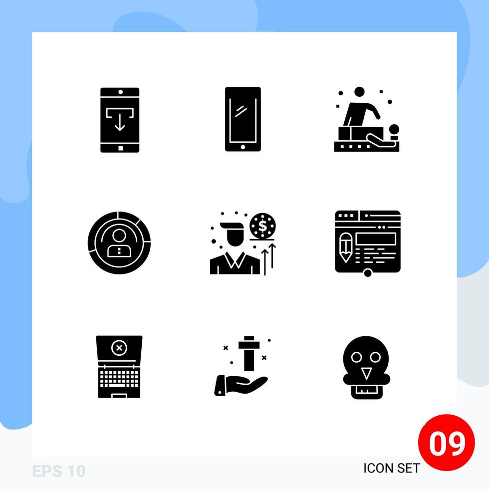 Group of 9 Modern Solid Glyphs Set for people features android diagram spa Editable Vector Design Elements Free Vector