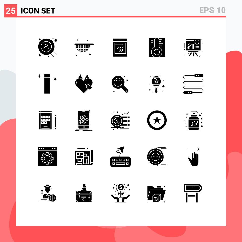 Modern Set of 25 Solid Glyphs and symbols such as presentation graph microwave temperature rainy Editable Vector Design Elements
