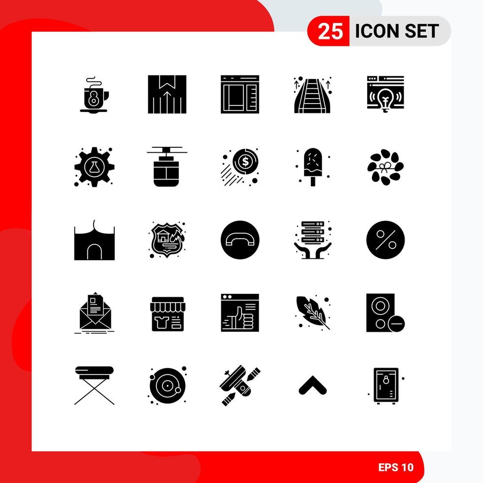 Pack of 25 Modern Solid Glyphs Signs and Symbols for Web Print Media such as web mall coding staircase escalator Editable Vector Design Elements