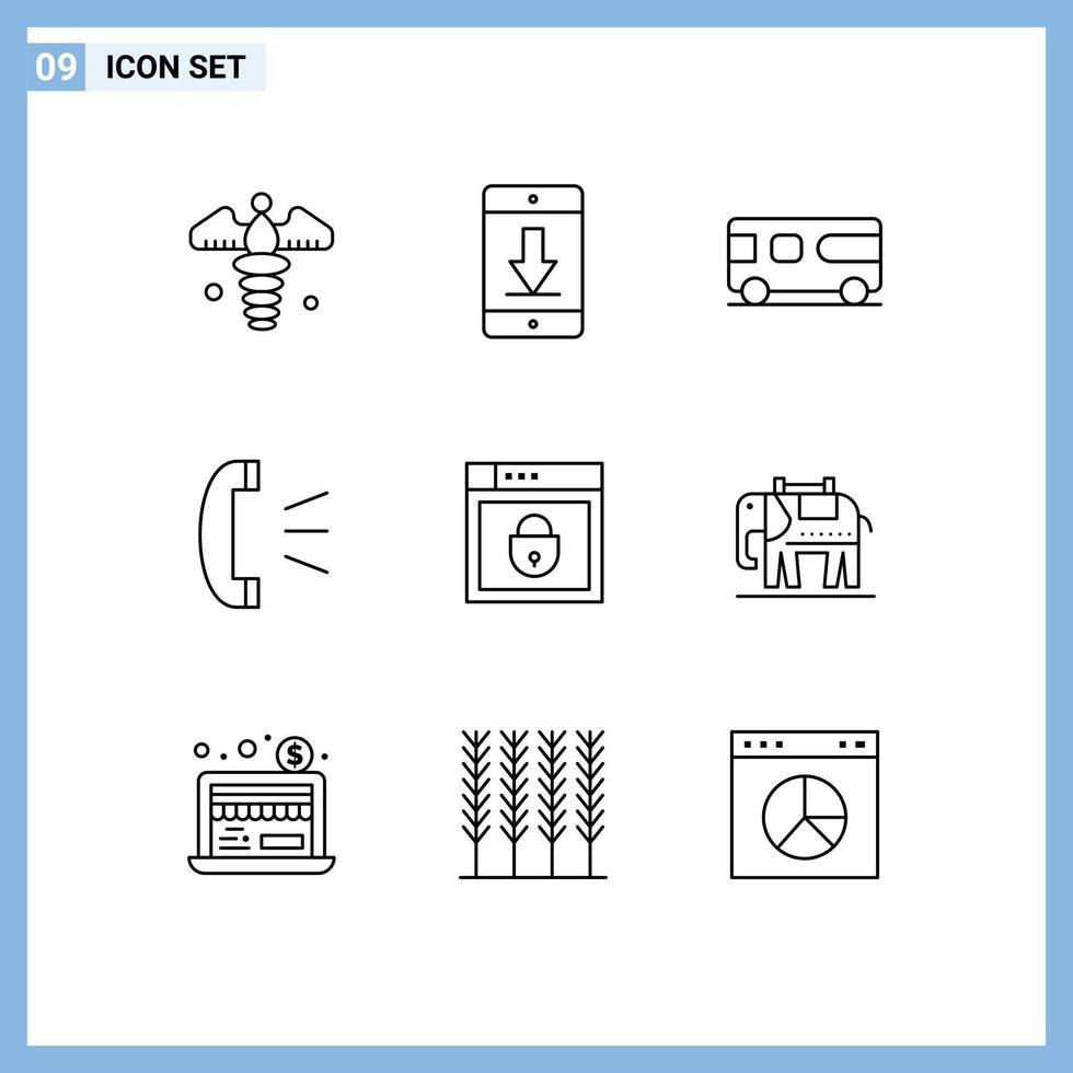Universal Icon Symbols Group of 9 Modern Outlines of internet client support mobile call vehicle Editable Vector Design Elements