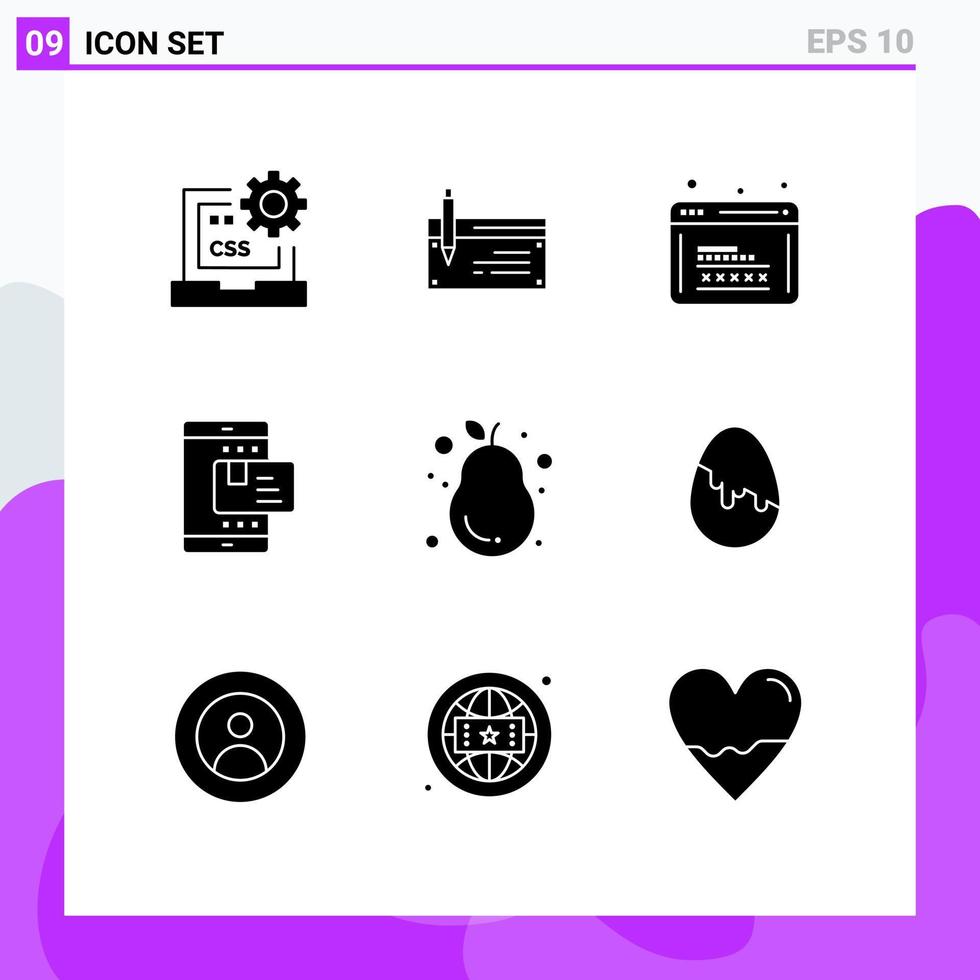 Universal Icon Symbols Group of 9 Modern Solid Glyphs of ecommerce web banking programming coding Editable Vector Design Elements