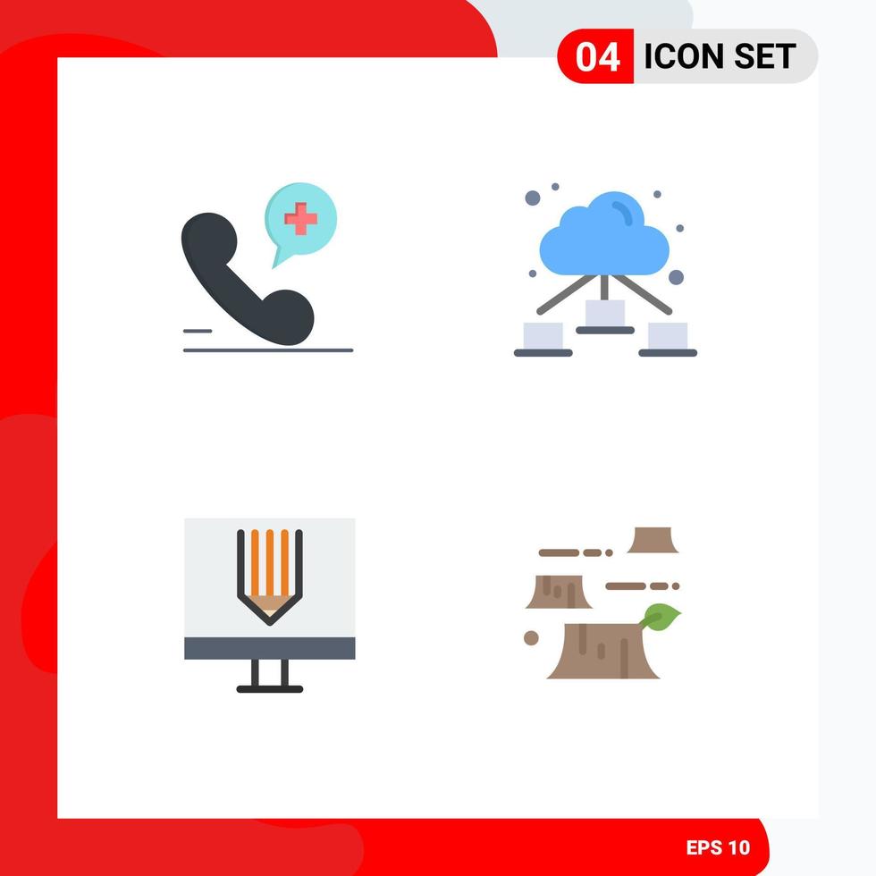 Modern Set of 4 Flat Icons Pictograph of mobile design hospital cloud programing Editable Vector Design Elements Free Vector