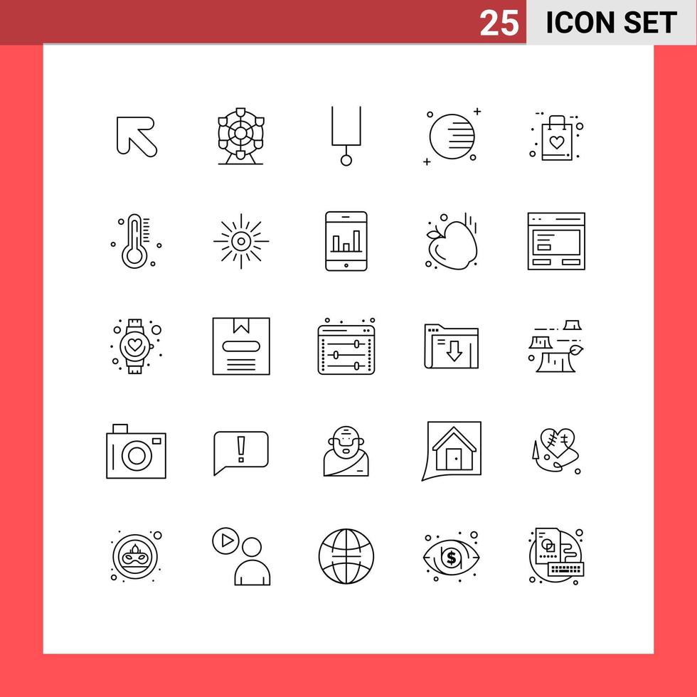25 Universal Line Signs Symbols of temperature faq tuning fork shopping bag Editable Vector Design Elements