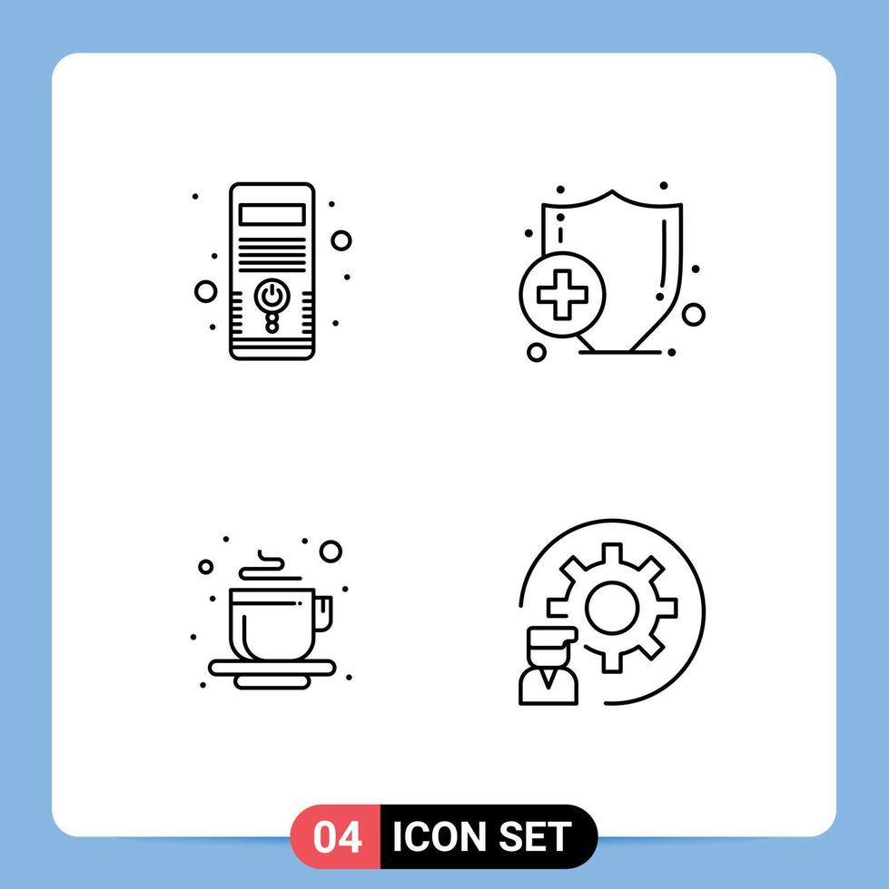 4 Universal Line Signs Symbols of computer tea system medical coding Editable Vector Design Elements