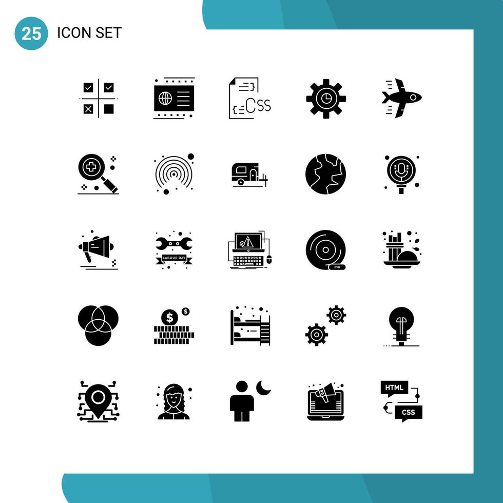 Group of 25 Modern Solid Glyphs Set for setting marketing payment graph development Editable Vector Design Elements