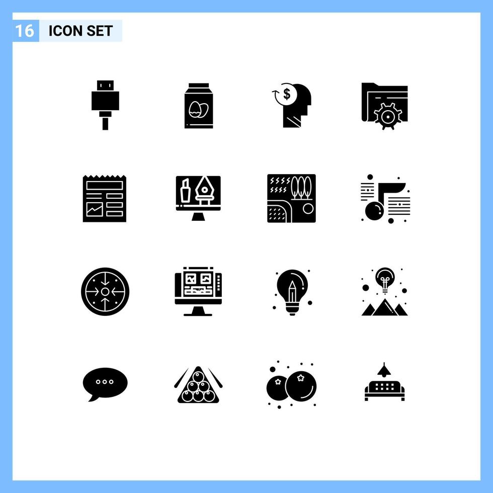 Editable Vector Line Pack of 16 Simple Solid Glyphs of computing setting account folder profile Editable Vector Design Elements Free Vector
