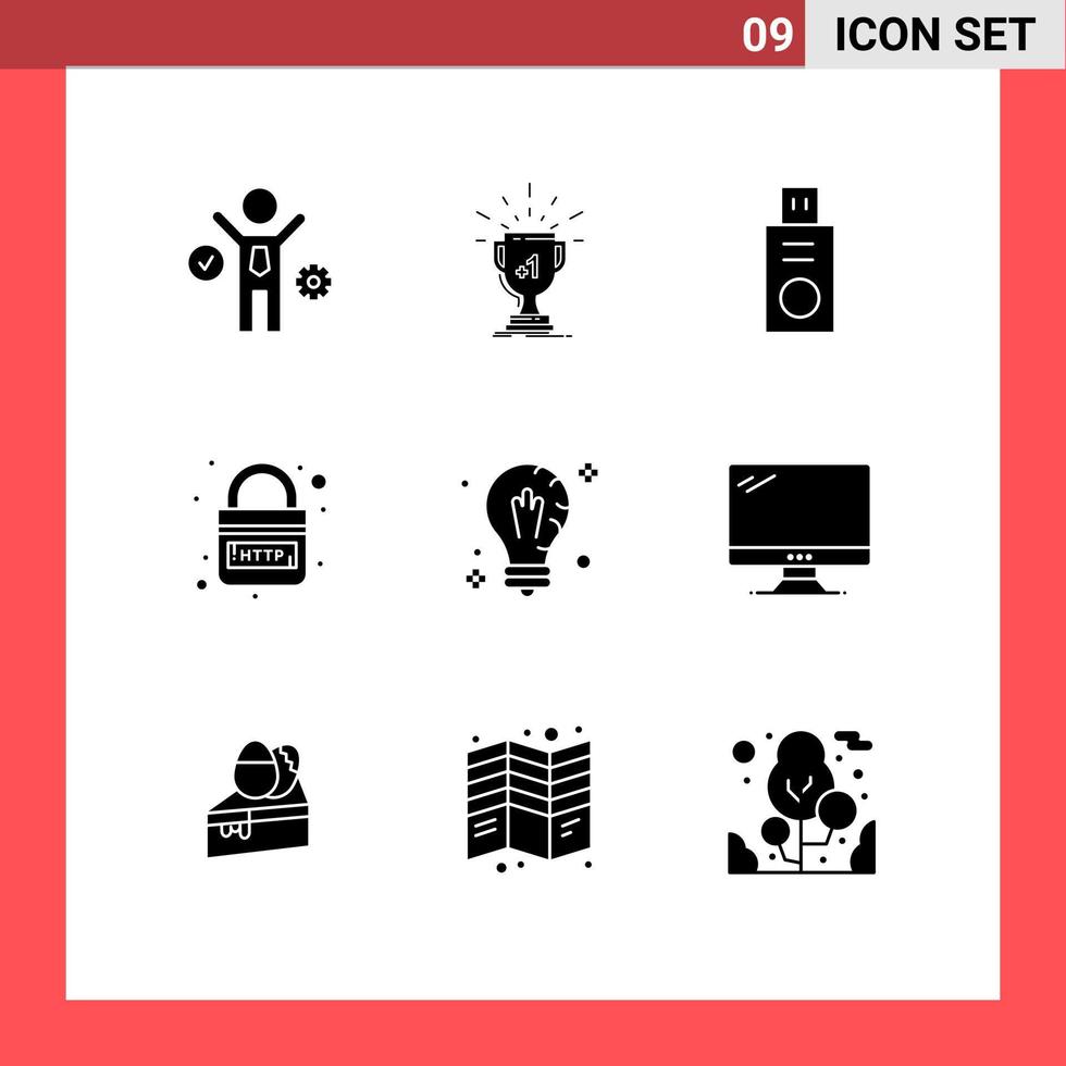 Editable Vector Line Pack of 9 Simple Solid Glyphs of bulb security disk link http Editable Vector Design Elements Free Vector