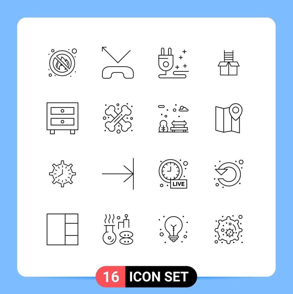16 Universal Outlines Set for Web and Mobile Applications school drawer cable cabinet success Editable Vector Design Elements