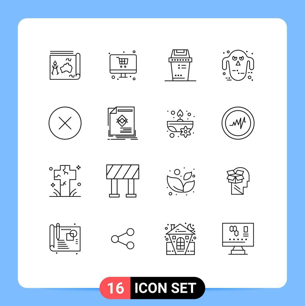 16 Universal Outlines Set for Web and Mobile Applications error halloween monitor ghoul trash Editable Vector Design Elements