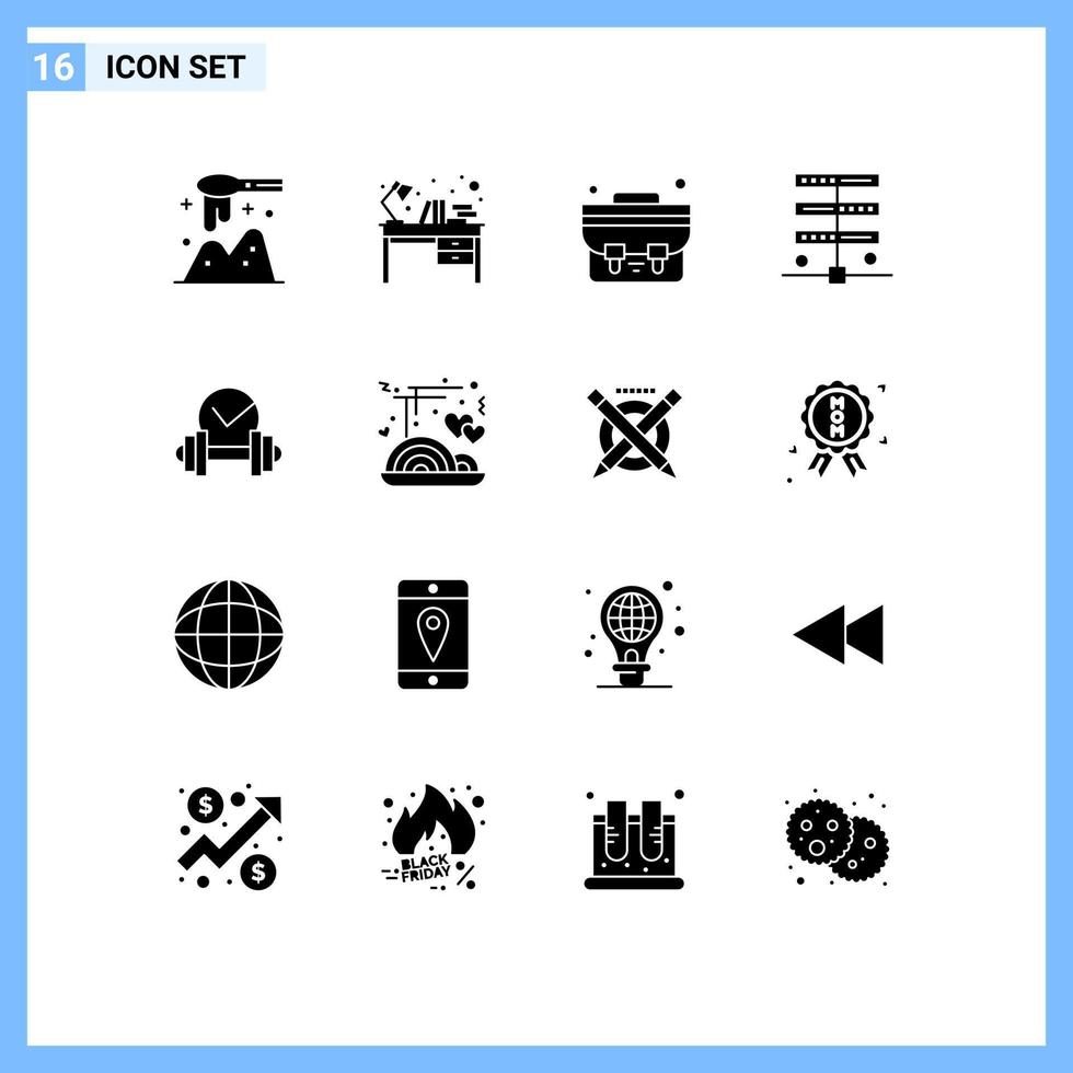 16 Universal Solid Glyphs Set for Web and Mobile Applications healthcare server study table internet data Editable Vector Design Elements