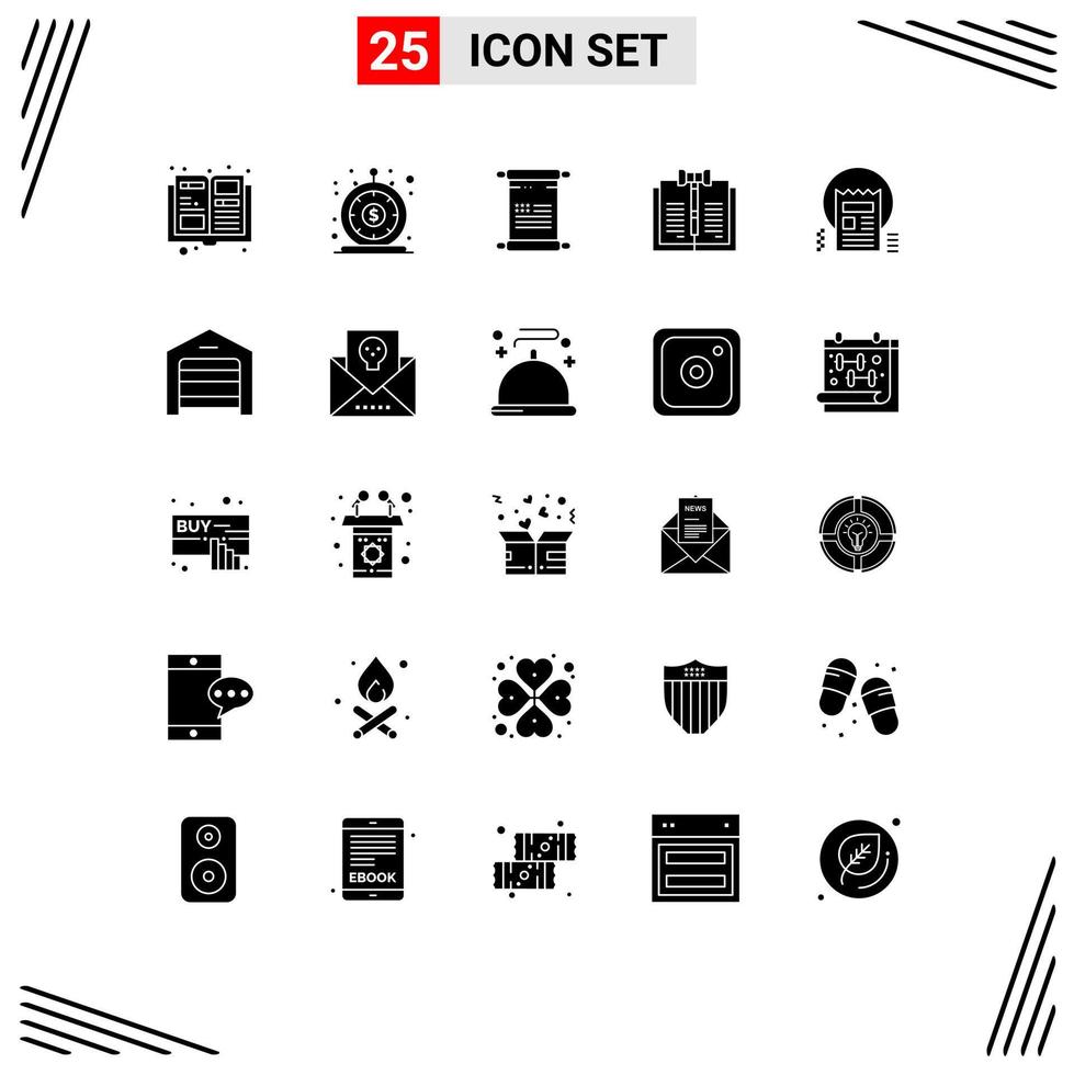 Editable Vector Line Pack of 25 Simple Solid Glyphs of document law scroll digital business Editable Vector Design Elements