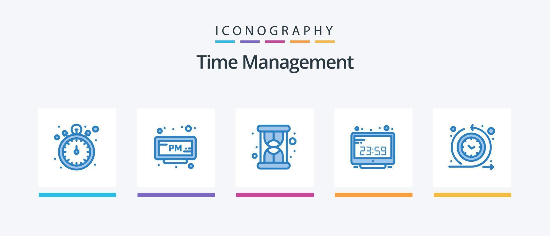 Time Management Blue 5 Icon Pack Including regular. display. hourglass. computer time. computer. Creative Icons Design vector