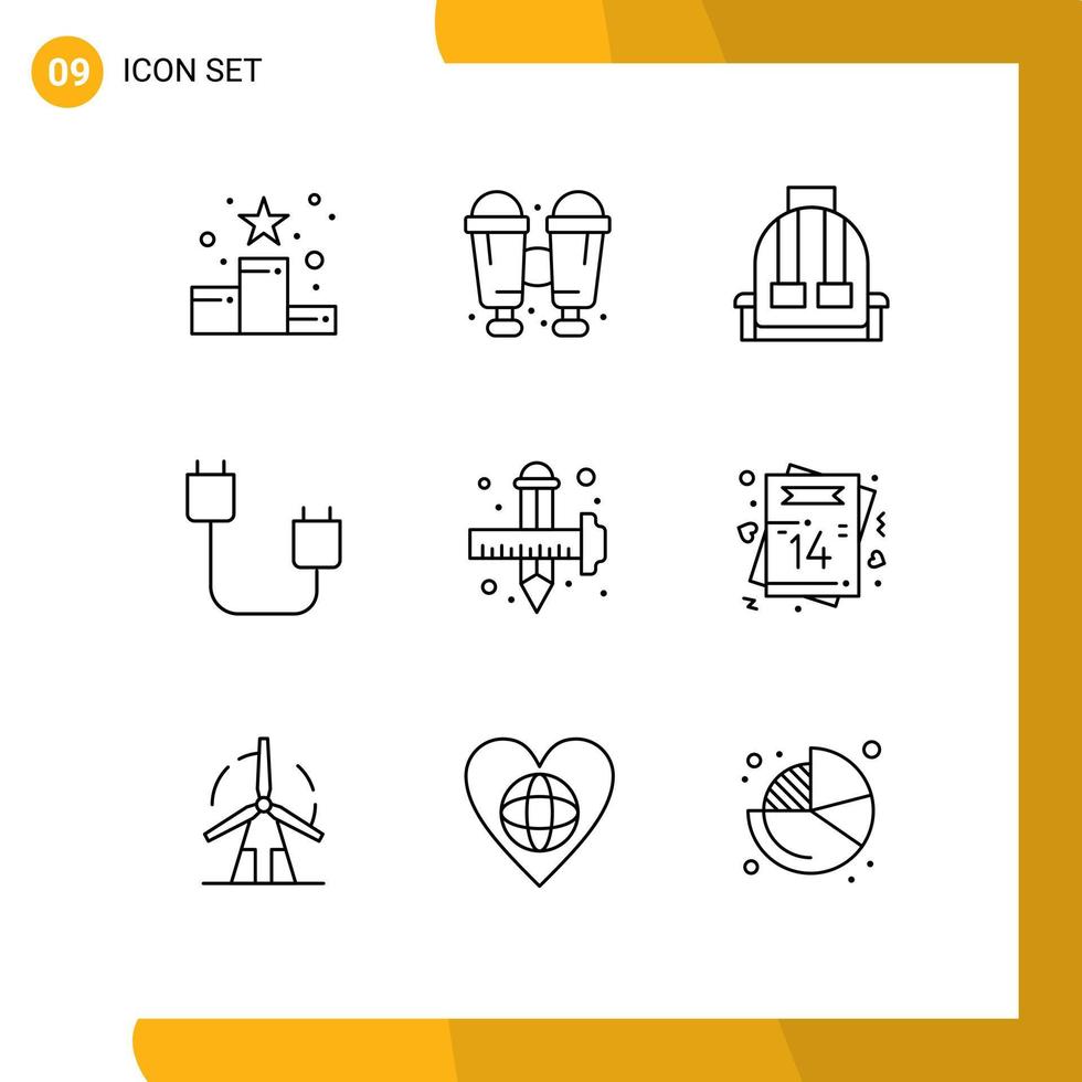 9 Thematic Vector Outlines and Editable Symbols of art gadget backpack devices computers Editable Vector Design Elements Free Vector