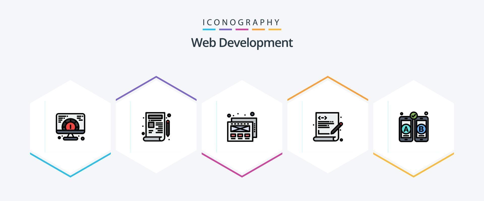 Web Development 25 FilledLine icon pack including . web design. mockup design. development. programming vector