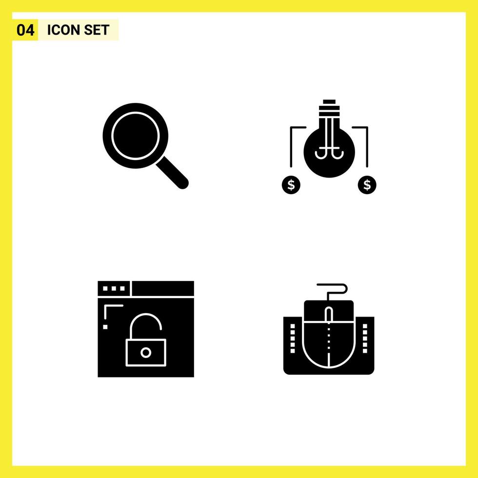Pictogram Set of 4 Simple Solid Glyphs of glass internet search solution secure Editable Vector Design Elements Free Vector