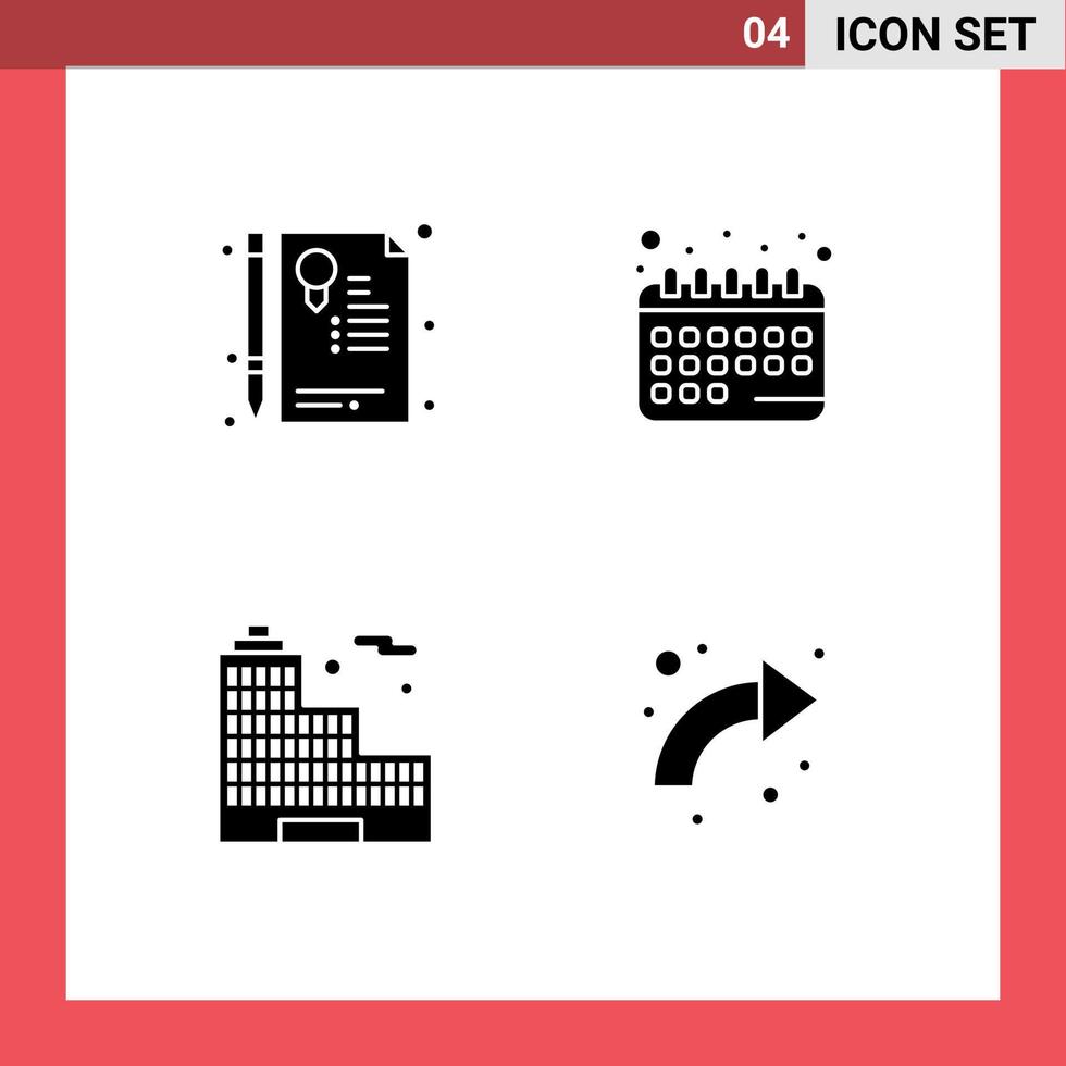 4 Solid Glyph concept for Websites Mobile and Apps certificate city seal date arrow Editable Vector Design Elements