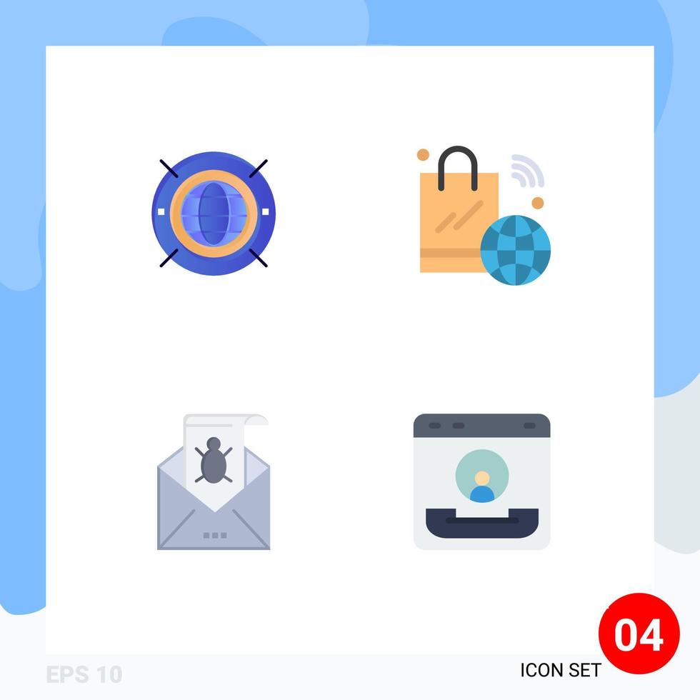 Pack of 4 creative Flat Icons of internet bug computing internet of things mail Editable Vector Design Elements Free Vector and Free SVG