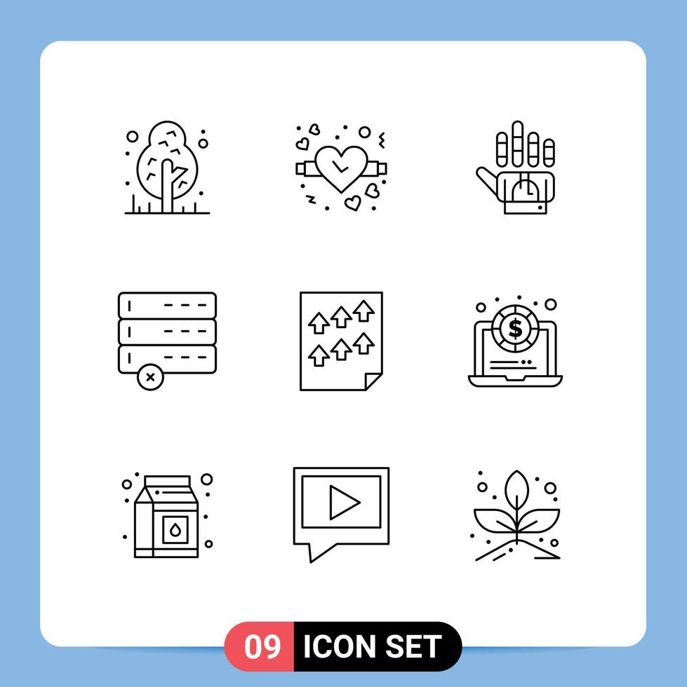 User Interface Pack of 9 Basic Outlines of paper high golve data data Editable Vector Design Elements